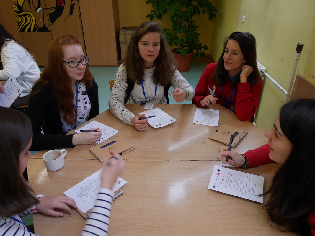 Jour 4 : (Dimanche). travail le matin sur la création de fiches sur le secourisme sur le modèle du jeu de société "Taboo". Le travail se fait par groupe, à chaque table, les 5 pays sont représentés et les discussions sont en anglais. L'après midi est libre dans les familles polonaises. Quant à nous, nous partons visiter la ville de Sandomierz.