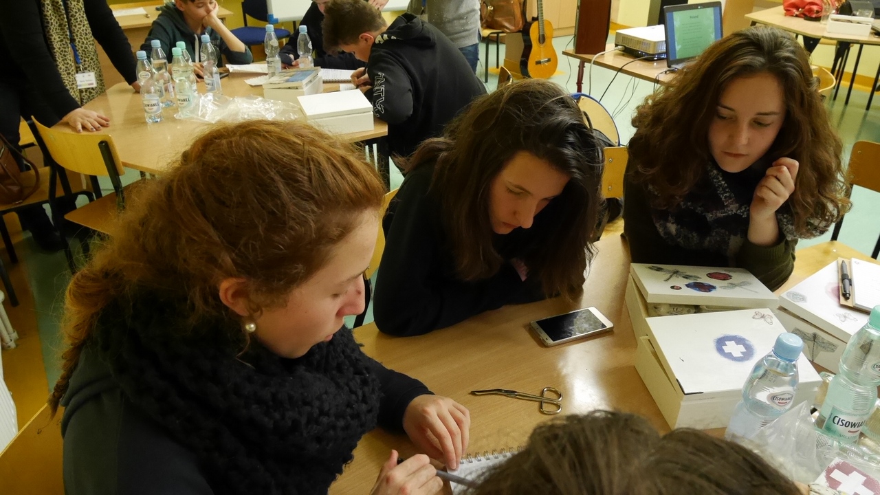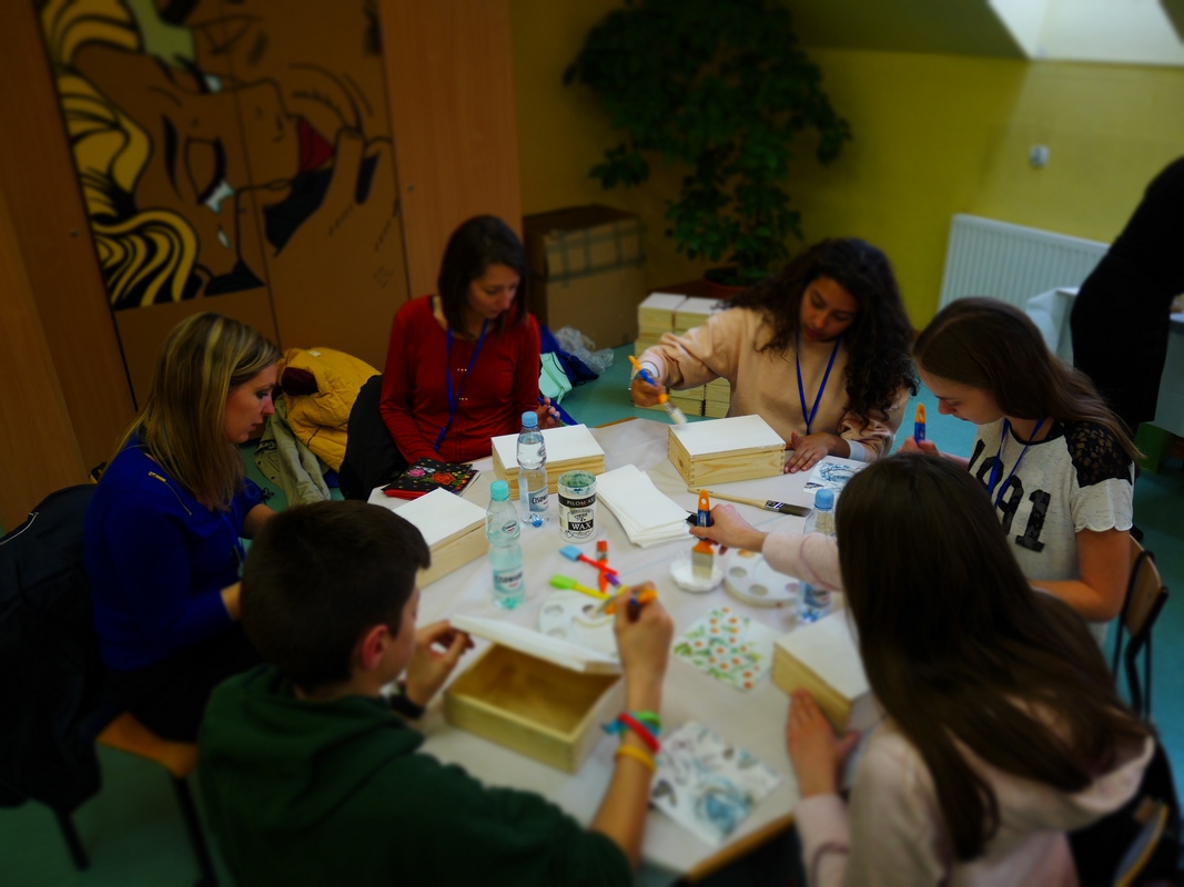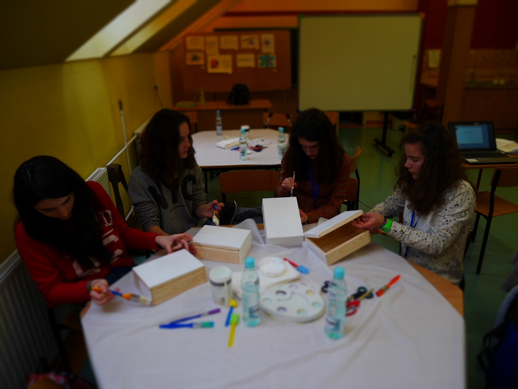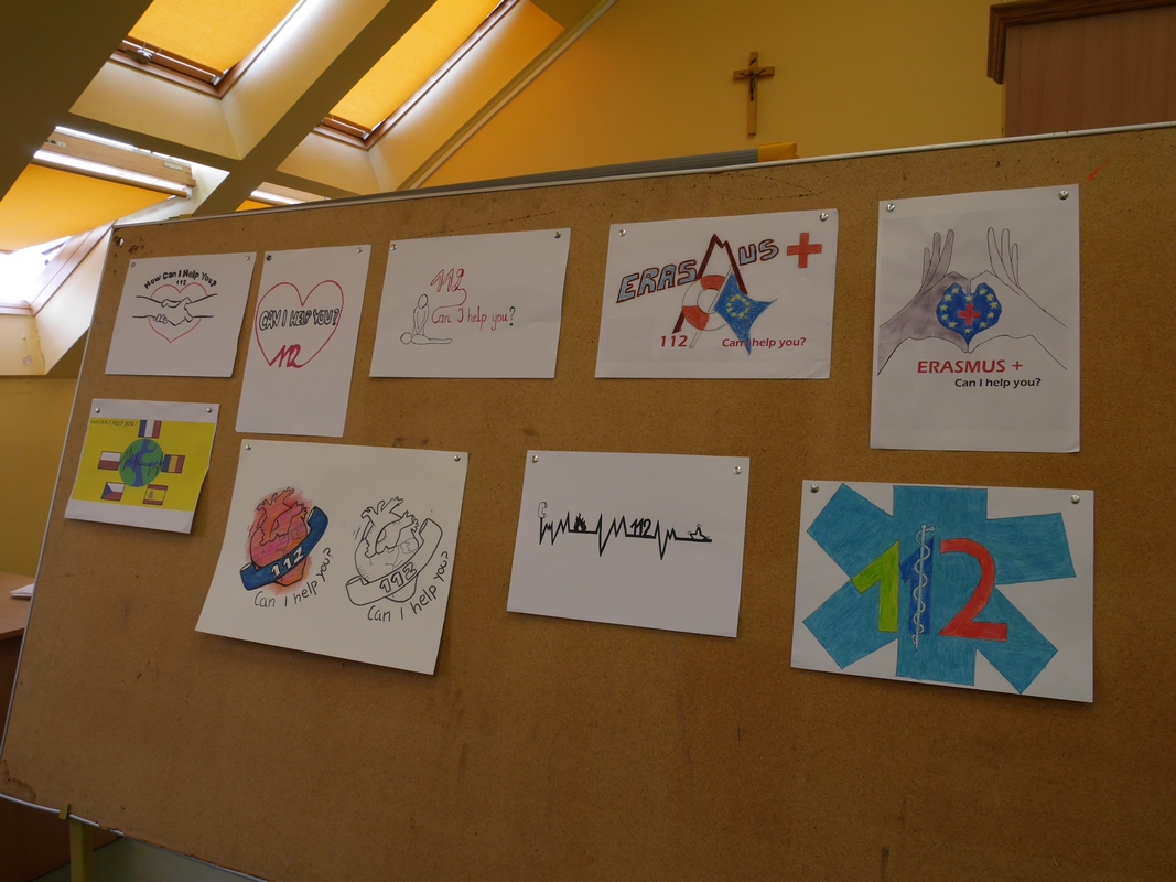 Jour 1 : (jeudi) Nous avons été très bien accueillis dans l'établissement de Stroza (à coté de Lublin dans l'Est de la Pologne). Distribution des badges et mise au travail assez rapidement. Au programme : questionnaires, élection du meilleur logo et du meilleur slogan, ..., puis ensuite conception de boites de 1er secours en bois et ateliers de secourisme. Le tout en anglais et à chaque fois avec plusieurs pays partenaires à chaque table.